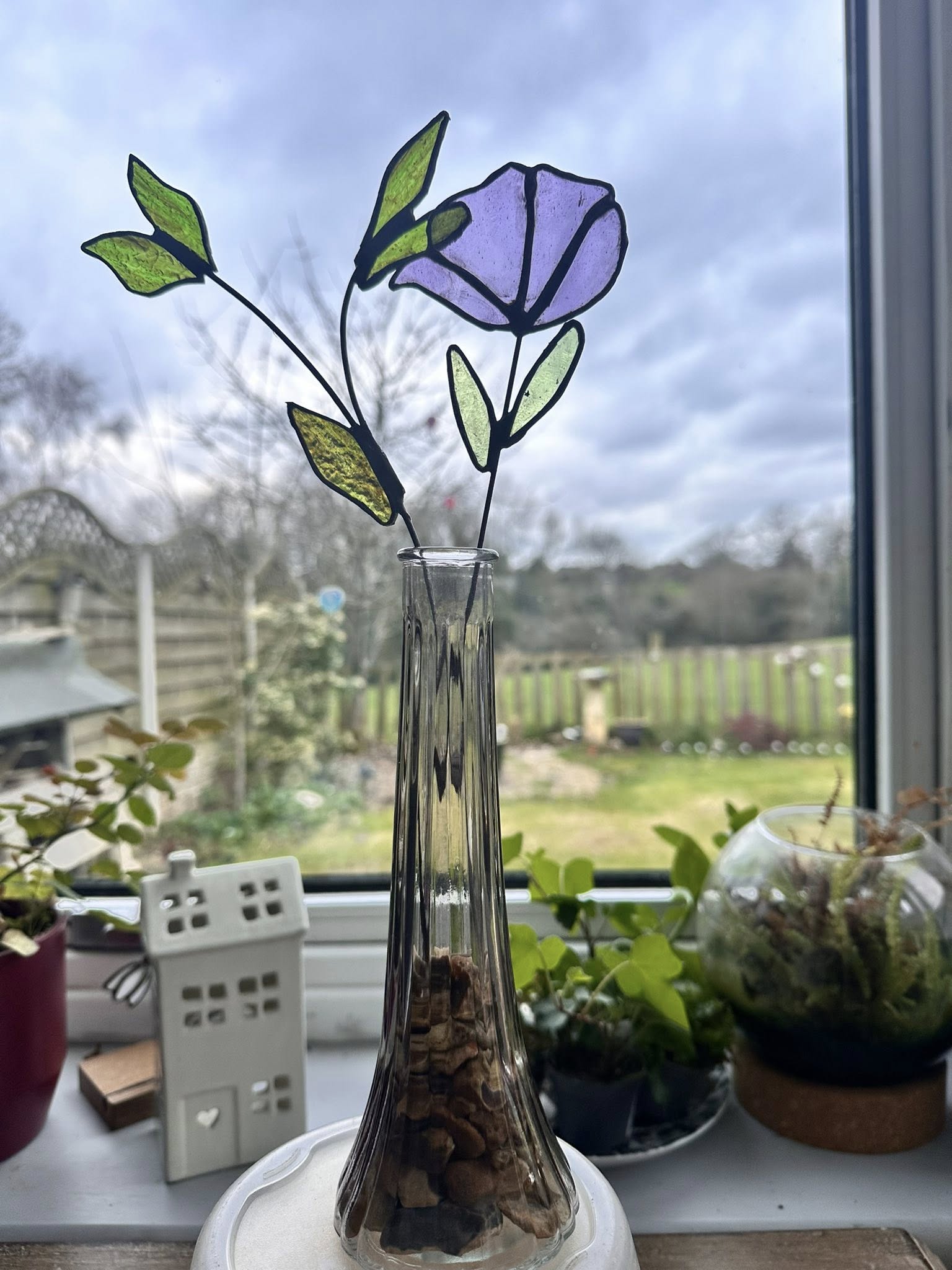 Claire creates handmade stained glass pieces inspired by nature and also runs stained glass and mosaic workshops in Staffordshire and the West Midlands. These sessions are ideal for beginners, group bookings, birthdays, hen parties and anyone wanting to learn a new skill in a relaxed and supportive setting.