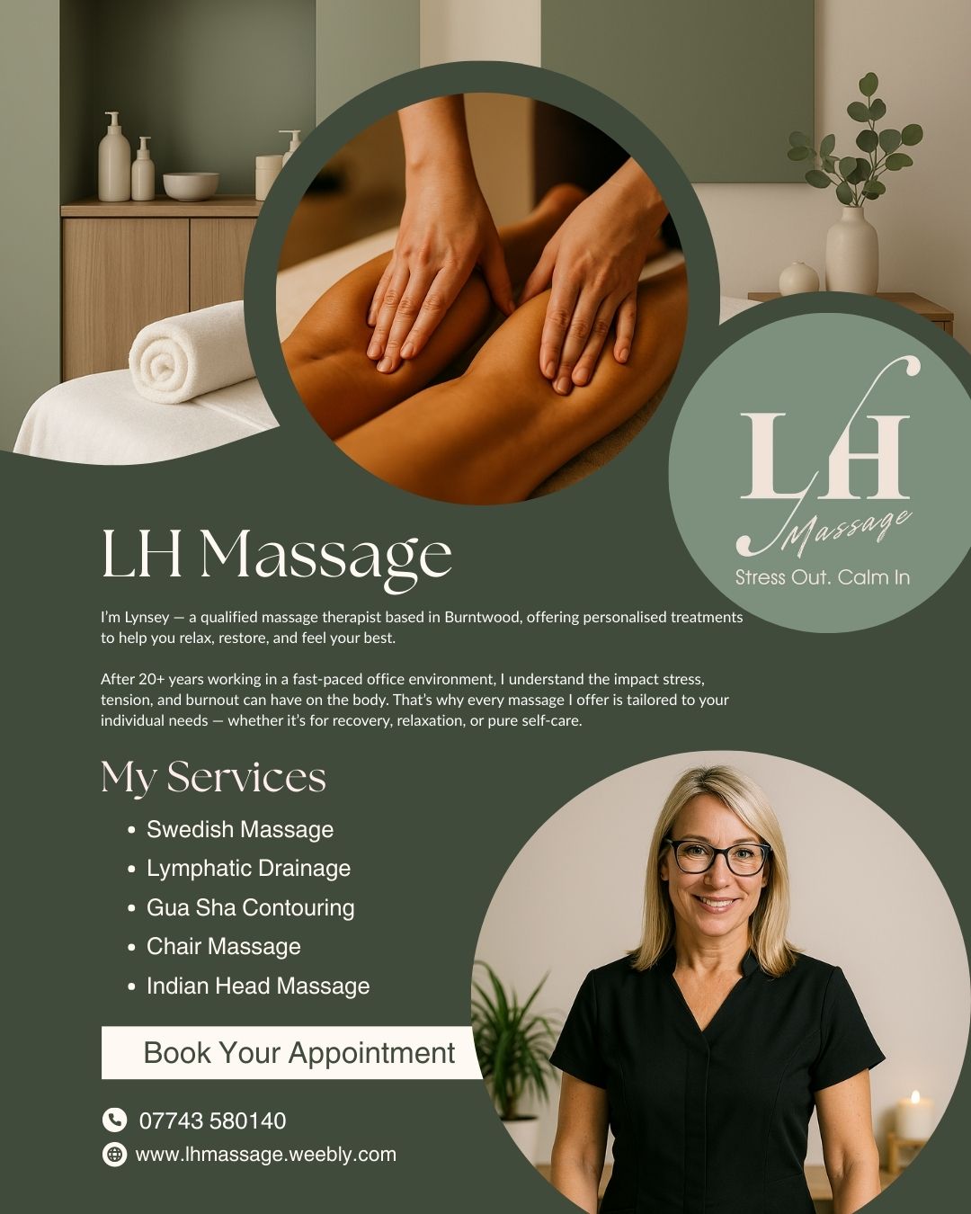 Whether you need to ease sore muscles, improve circulation, support recovery, or simply switch off from the noise of daily life, Lynsey tailors every session to your unique needs.